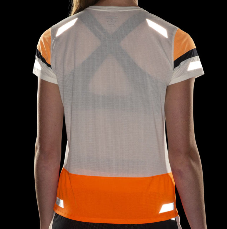 Dark doesn't always mean cold. For warm-weather runs between dusk and dawn, grab this women's running top. High-visibility design plus lightweight, breathable GO₂ᵀᴹ fabric helps you get recognized as a runner while keeping you cool and comfortable.