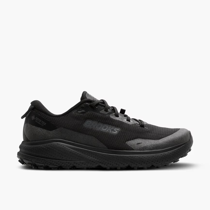 The Brooks Divide 6 features a breathable mesh upper, providing exceptional ventilation and a superb, snug fit. The mesh material offers ample stretch for a secure feel, while also promoting increased airflow to prevent uncomfortable heat build up. This design ensures a cool and regulated temperature, creating a healthy environment for your feet. A GORE-TEX Invisible Fit membrane also resides in the upper and works to shield feet from becoming wet and uncomfortable during poor weather, by preventing water from entering. For added comfort, a padded tongue helps reduce chafing and rubbing. Overlays and a toe protector are integrated to safeguard your feet from rocks and uneven surfaces, offering complete peace of mind during your runs. Finally, the traditional lacing system ensures a secure, locked-in feel that minimises in-shoe slippage.